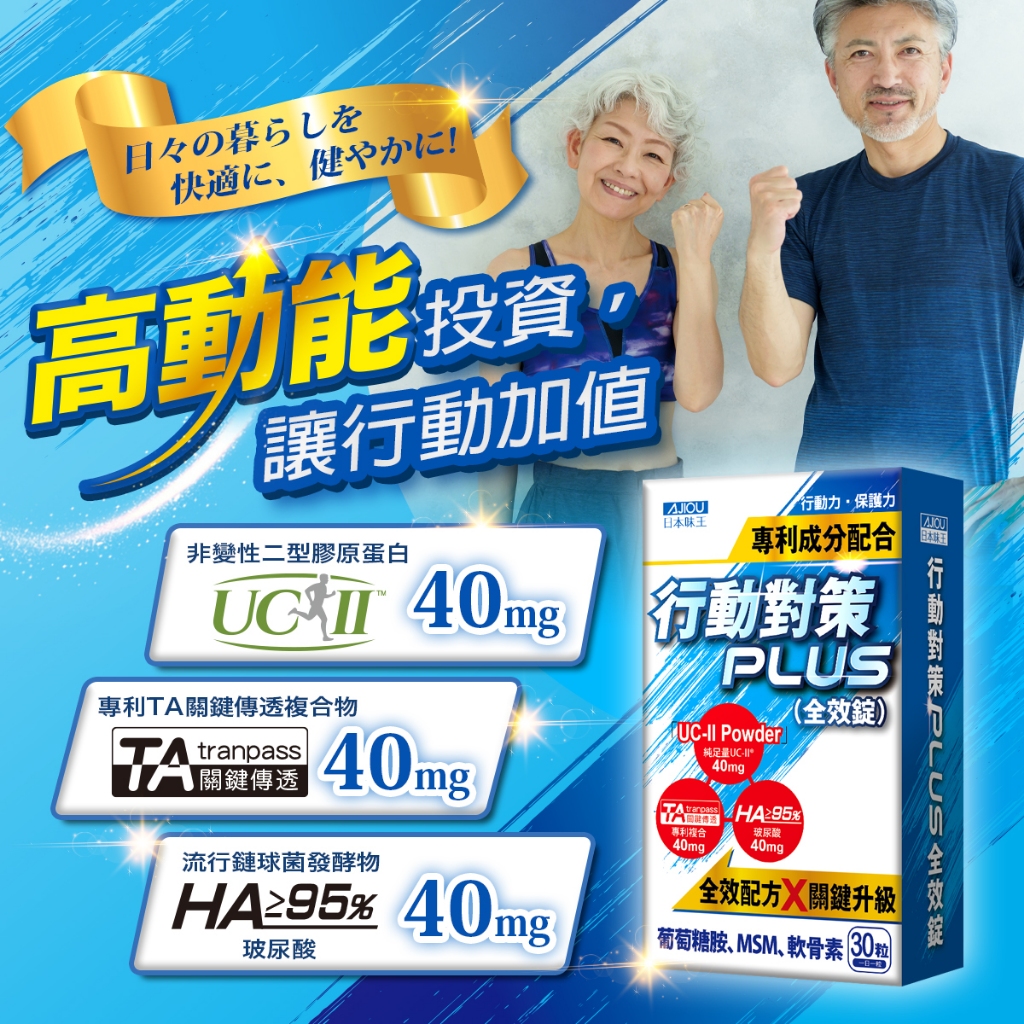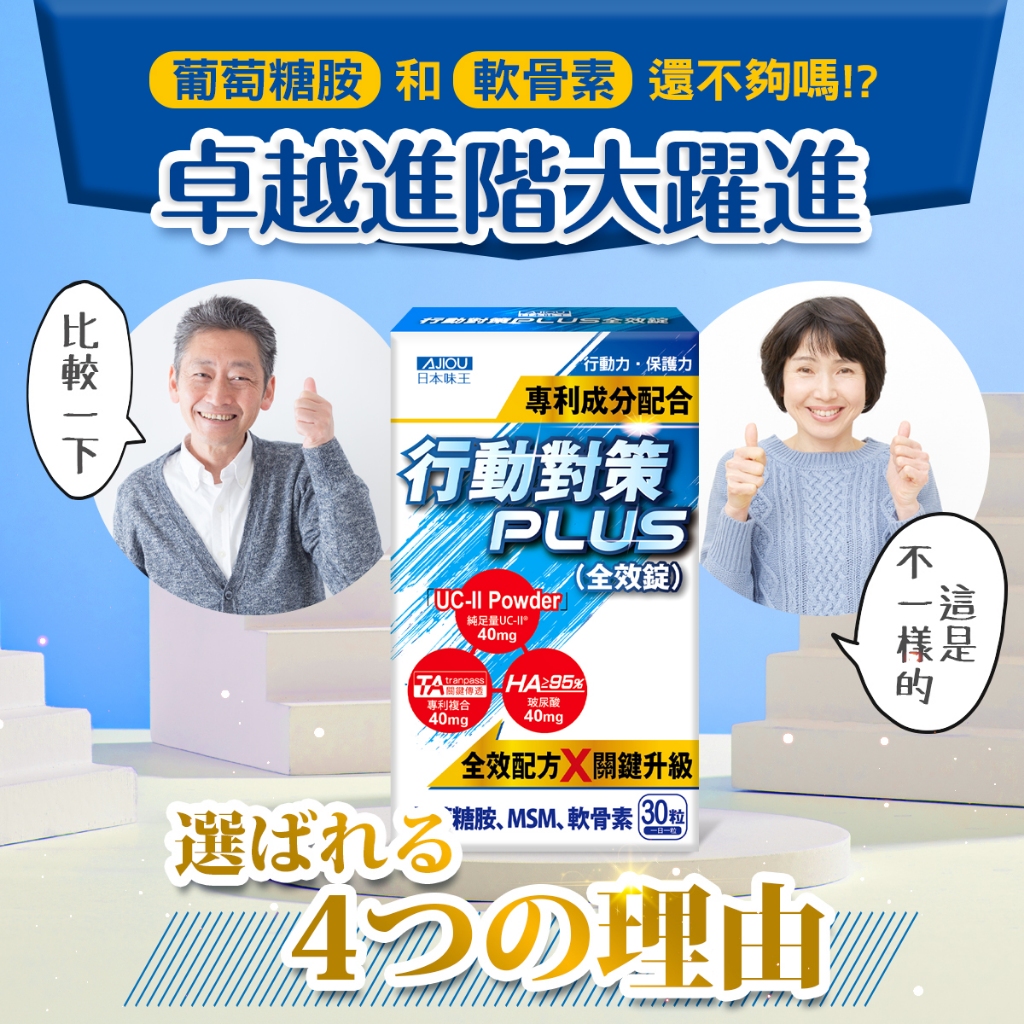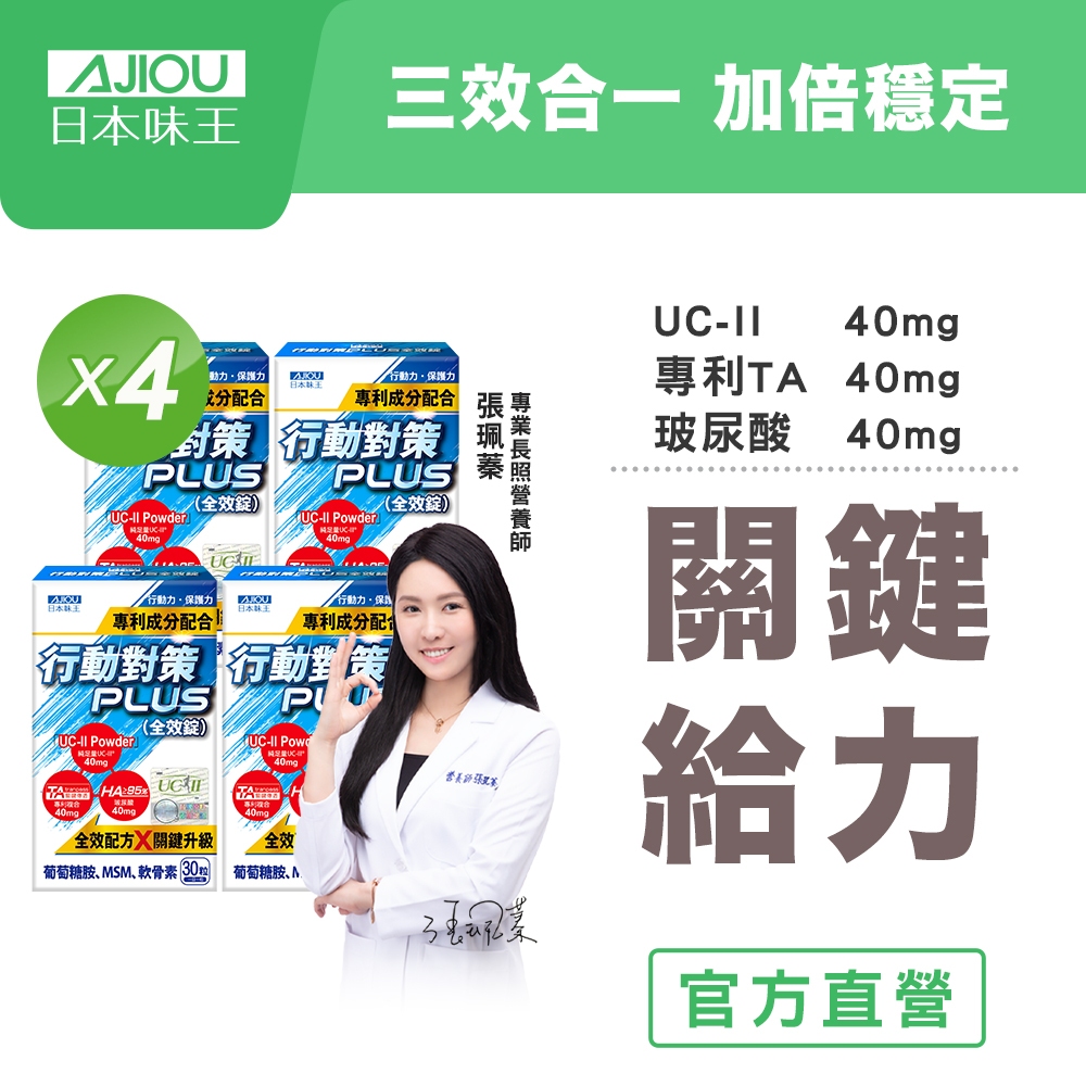 日本味王 10天靈活有感 !行動對策PLUS全效錠30粒X4盒【官方直營店】(專利TA關鍵傳透/UC-II/軟骨素)行動對策PLUS全效錠30粒X4盒Well Being日本味王 官方旗艦店 |消化保健專家 |葉黃素一級棒