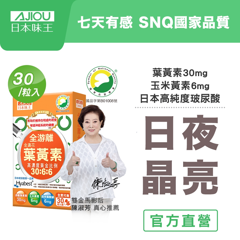 日本味王 7天有感!全游離型金盞花葉黃素強化B群特別版30粒/盒(全素食/玻尿酸/維生素AB/花青素)