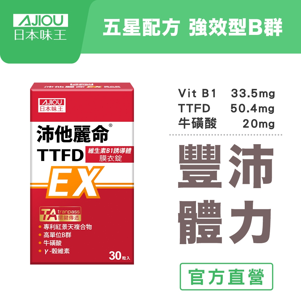 日本味王 沛他麗命TTFD高單位B群EX膜衣錠30粒【官方直營店】(B1誘導體/γ-穀維素/MSM/專利TA)沛他麗命30粒X1盒|沛他麗命30粒X2盒Well Being日本味王 官方旗艦店 |消化保健專家 |葉黃素一級棒