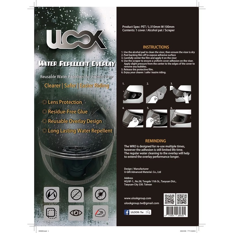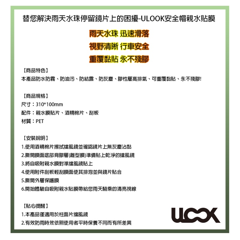 ULOOK WRO 安全帽親水外貼片 超撥水 親水貼 柱面鏡片專用 日本製造 台灣設計《比帽王》ULOOK 安全帽親水外貼片-透明比帽王 騎士用品專賣店