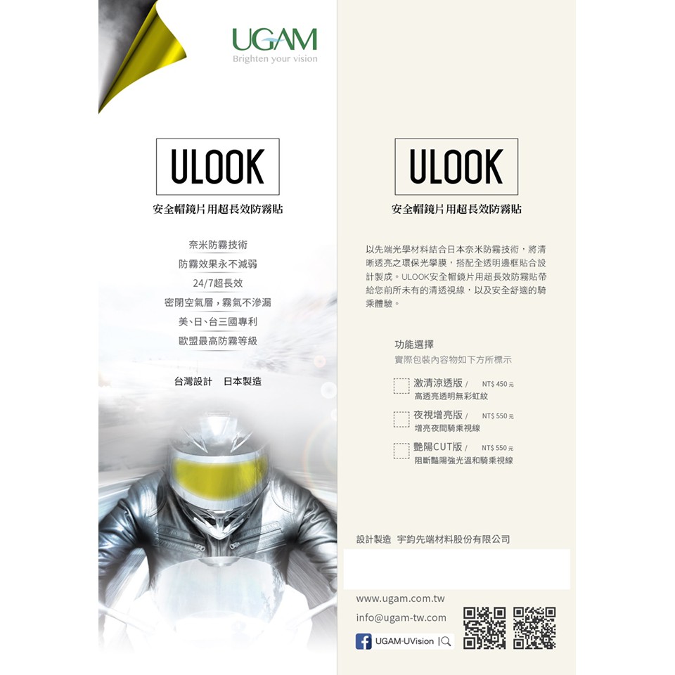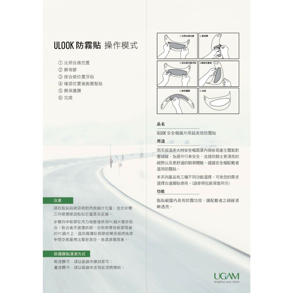 日本 UGAM ULOOK 防霧貼片 防霧貼 防霧片 不留殘膠 3/4罩 安全帽《比帽王》激清清透版(3/4罩)|夜視增亮版(3/4罩)|豔陽CUT版(3/4罩)|激清清透版(全罩)|夜視增亮版(全罩)|豔陽CUT版(全罩)|粉紅增豔版(3/4罩)|粉紅增豔版(全罩)比帽王 騎士用品專賣店