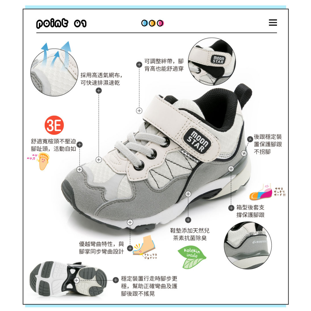 日本月星Moonstar機能童鞋 2E競速運動327任選(中大童段)