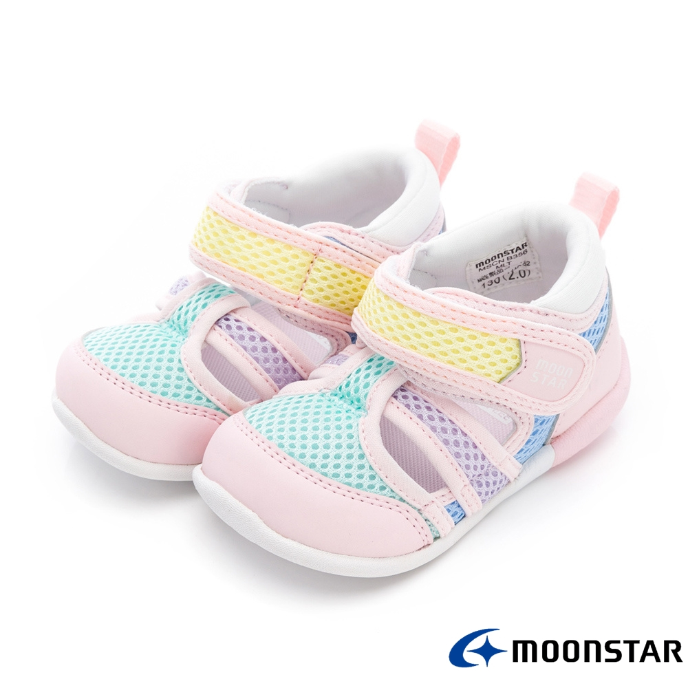 • 日本月星Moonstar機能童鞋 3E透氣護趾涼鞋款3563粉彩(寶寶段)
