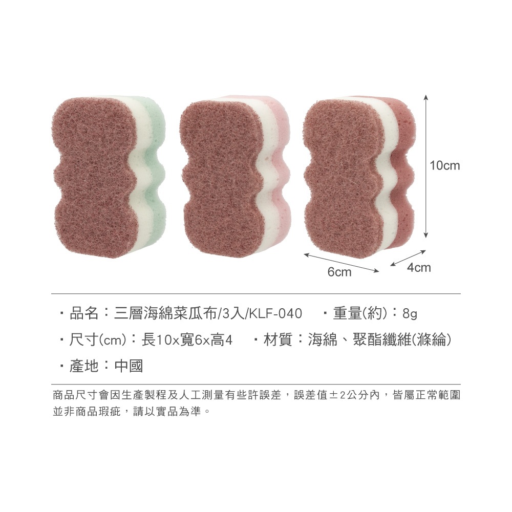 【元氣熊】三層海綿菜瓜布/一組3入/顏色隨機【元氣熊】三層海綿菜瓜布/一組3入/顏色隨機Sponges & Scouring Pads日本山崎 CONDOR 台灣旗艦店