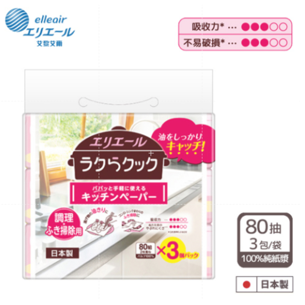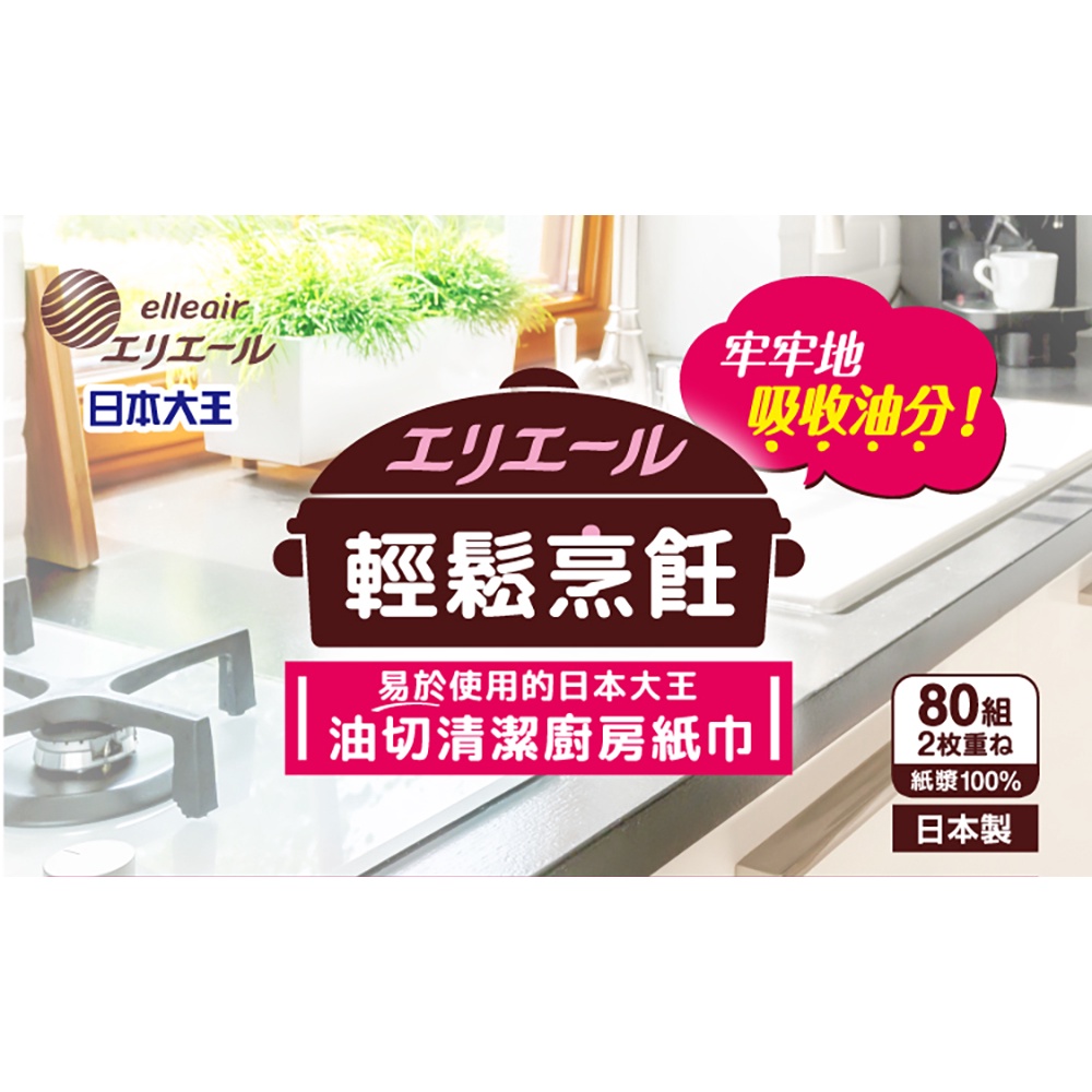 日本大王elleair 油切清潔廚房紙巾(抽取式) 80抽/包x3包/袋1袋Tissue & Paper Towels日本大王elleair 官方旗艦店