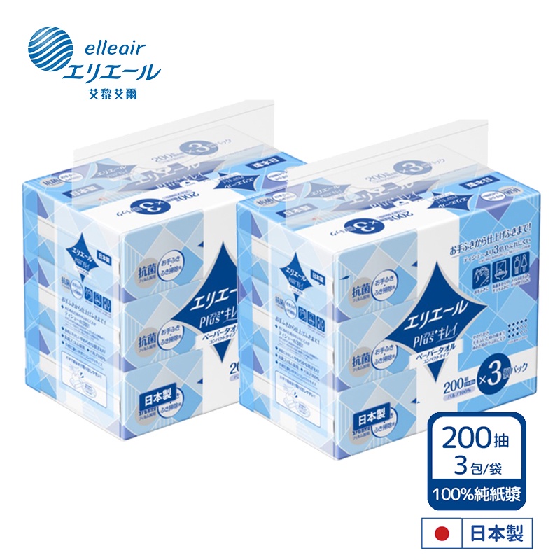 日本大王elleair 柔韌吸水擦手紙巾(抽取式) (200抽/包x3包) /袋