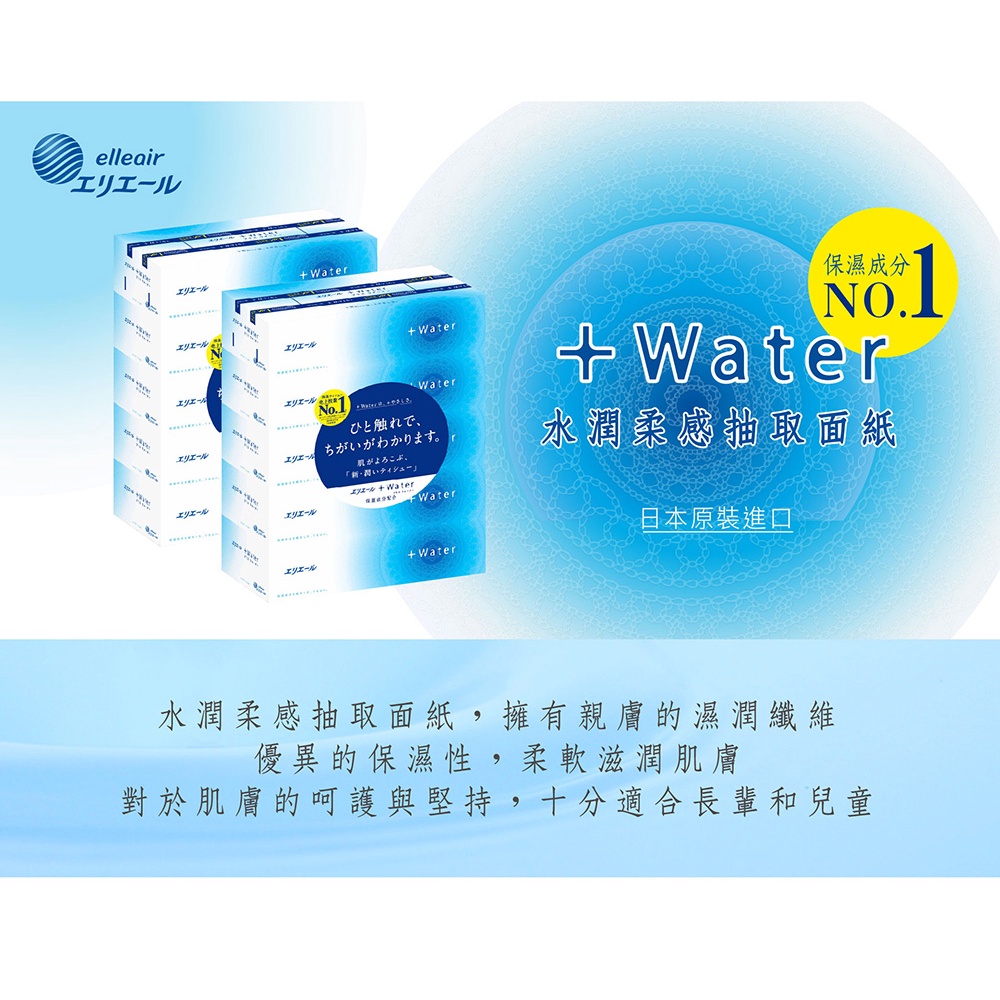 日本大王elleair +Water水潤柔感抽取面紙 (180抽/盒) 5盒/串日本大王elleair +Water水潤柔感抽取面紙 (180抽/盒) 5盒/串Tissue & Paper Towels日本大王elleair 官方旗艦店