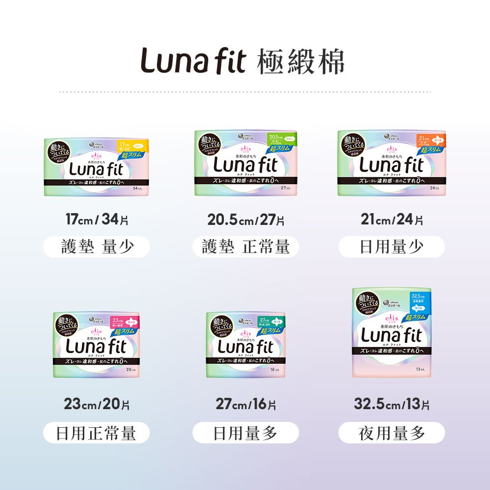 日本大王elis愛麗思 Luna fit 純淨裸肌極緞棉超薄款衛生棉17 /20.5 /21 /23 /27 /32.5Luna fit 極緞棉(超取上限12包,17cm(34片/包) x3包|Luna fit 極緞棉(超取上限12包,20.5cm(27片/包) x3包|Luna fit 極緞棉(超取上限12包,21cm(24片/包) x3包|Luna fit 極緞棉(超取上限12包,23cm(20片/包) x3包|Luna fit 極緞棉(超取上限12包,27cm(16片/包) x3包|Luna fit 極緞棉(超取上限12包,32.5cm(13片/包) x3包|Luna fit 極緞棉(超取上限12包,17cm(34片/包) x1包|Luna fit 極緞棉(超取上限12包,20.5cm(27片/包) x1包|Luna fit 極緞棉(超取上限12包,21cm(24片/包) x1包|Luna fit 極緞棉(超取上限12包,23cm(20片/包) x1包|Luna fit 極緞棉(超取上限12包,27cm(16片/包) x1包|Luna fit 極緞棉(超取上限12包,32.5cm(13片/包) x1包Feminine Care日本大王elleair 官方旗艦店