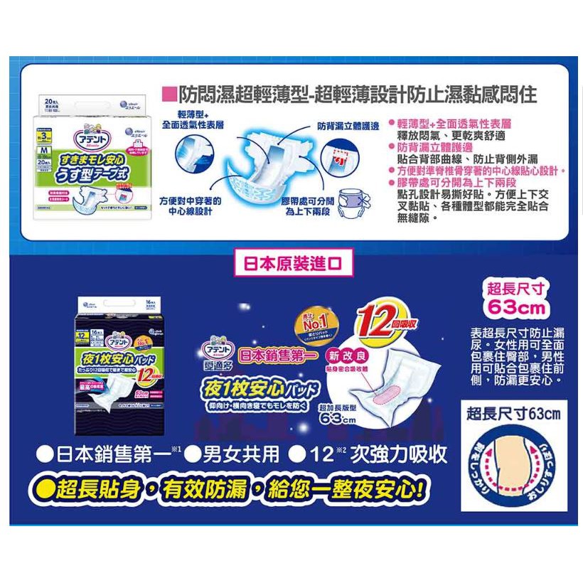 日本大王Attento 愛適多夜間超安心尿片超特大量_12回吸收 (14片/包)全系列100%日本原裝進口日本大王Attento 愛適多夜間超安心尿片超特大量_12回吸收 (14片/包)全系列100%日本原裝進口Adult Diapers & Incontinence日本大王elleair 官方旗艦店