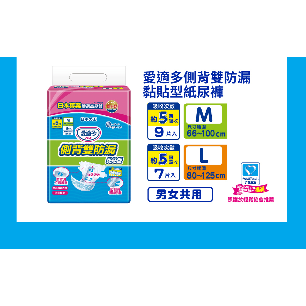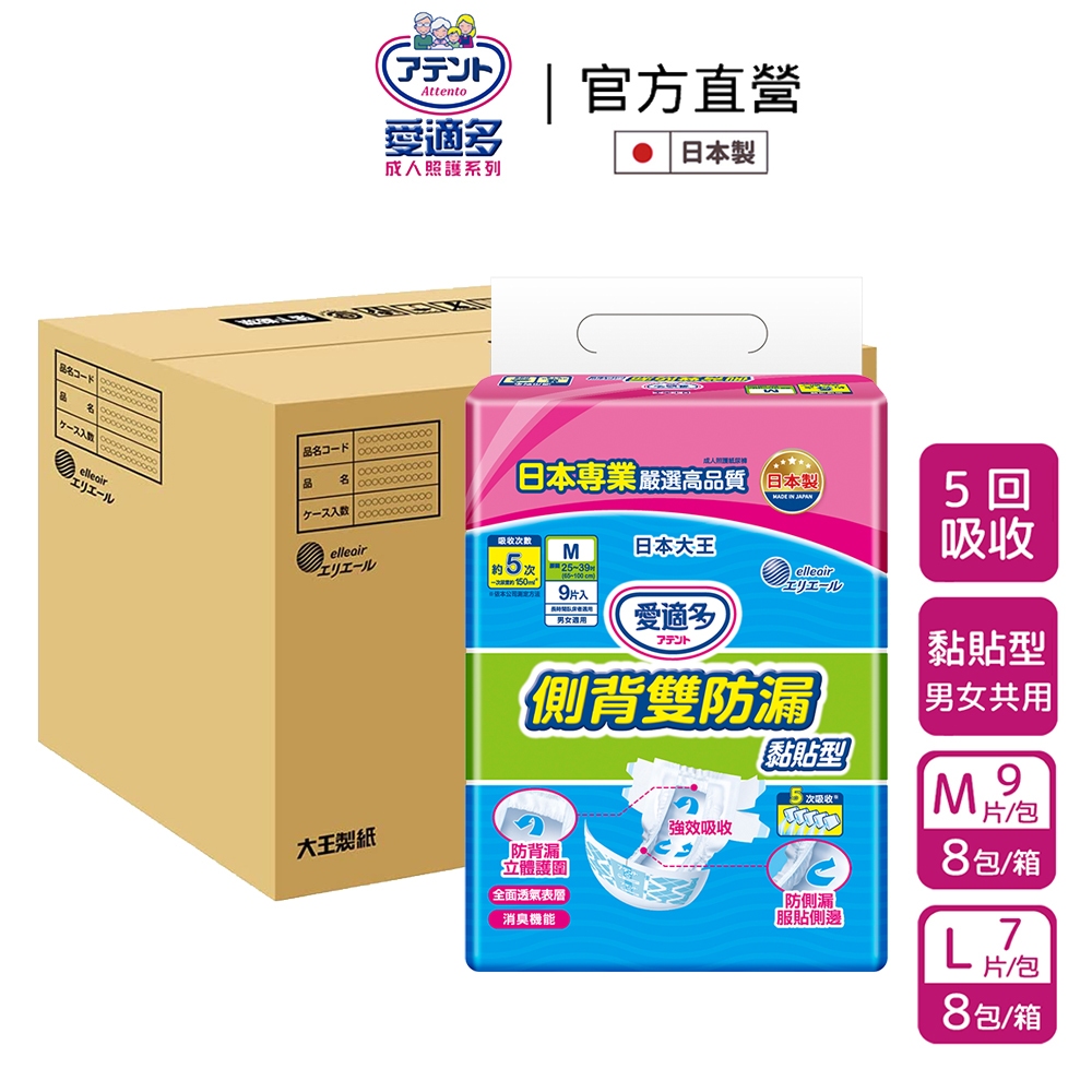 日本大王Attento愛適多 側背雙防漏貼型紙尿褲 M/L 黏貼型 (8包/箱 箱購)L(7片/包)x8|M(9片/包)x8Adult Diapers & Incontinence日本大王elleair 官方旗艦店