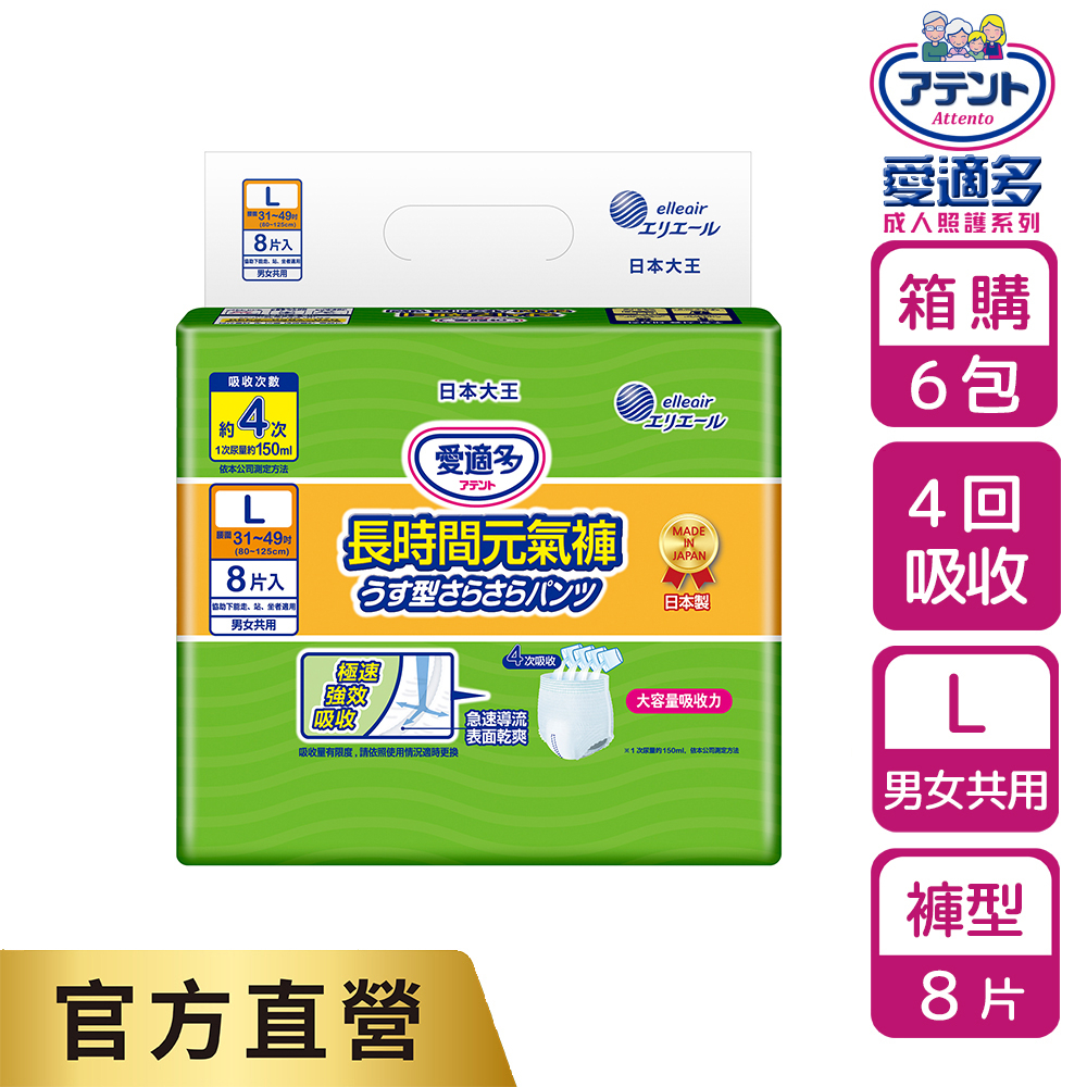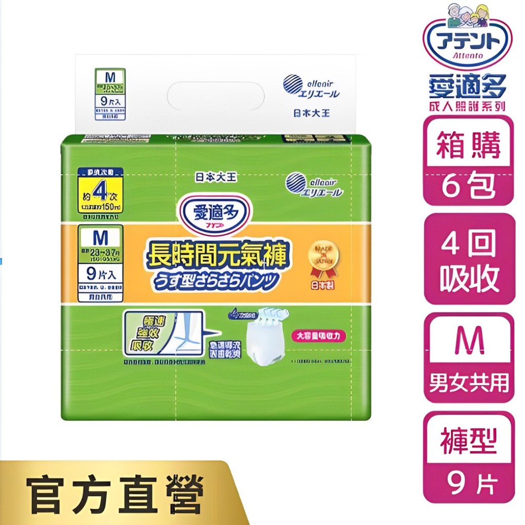 日本大王Attento愛適多 長時間4回吸收元氣褲M(9片/包) / L (8片/包) (6包/箱 箱購)日本原裝進口M (9片/包)x6|L(8片/包)x6Adult Diapers & Incontinence日本大王elleair 官方旗艦店