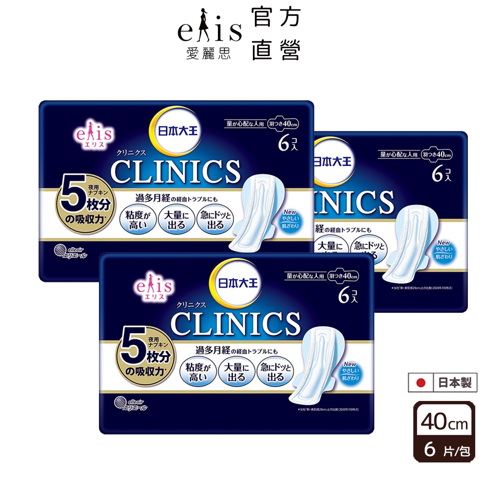 日本大王elis 愛麗思CLINICS 吸收量升級-量特多專用衛生棉 40cmx3包組40cmx3包組 (超取上限10包)Feminine Care日本大王elleair 官方旗艦店