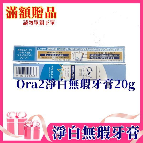 贈品 滿額活動贈品 Ora2淨白無瑕牙膏20g 請勿單獨下單贈品 滿額活動贈品 Ora2淨白無瑕牙膏20g 請勿單獨下單Oral Care日本三詩達SUNSTAR|愛樂齒Ora2|G.U.M|巧虎|廣納口腔保健品牌旗艦