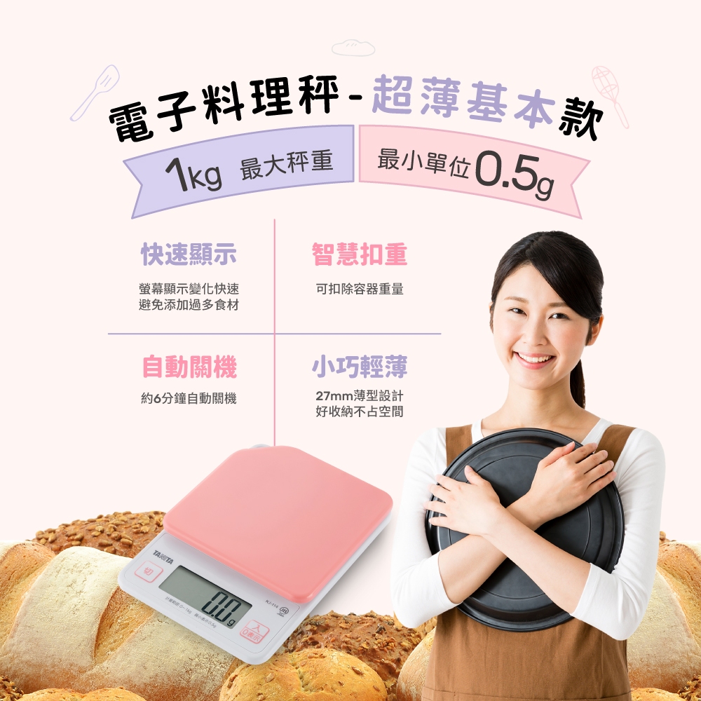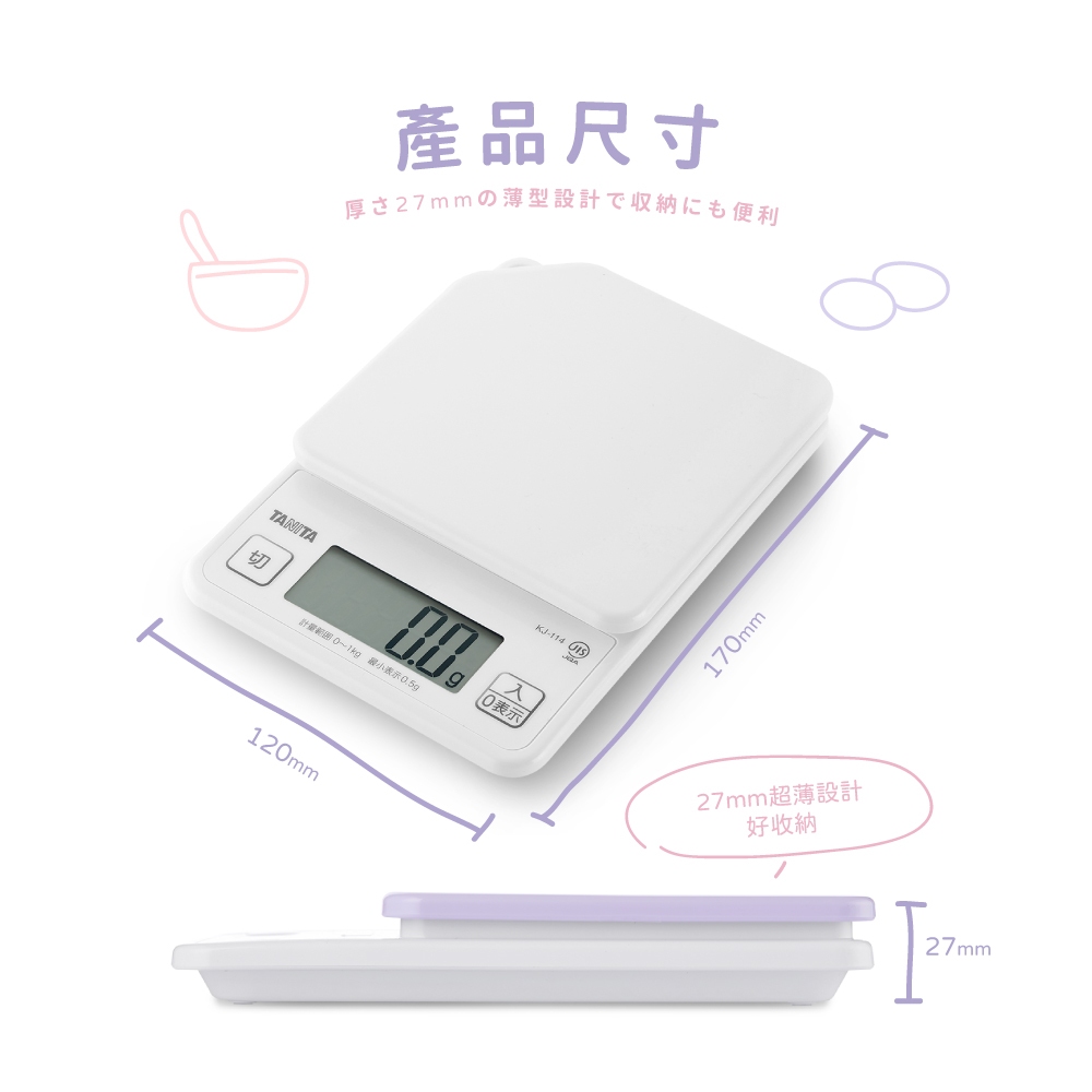 【滿千抽豪禮】日本TANITA 電子料理秤-超薄基本款(0.5克~1公斤) KJ114 (3色)-台灣公司貨白色|粉紫|粉紅Others日本TANITA 台灣旗艦館
