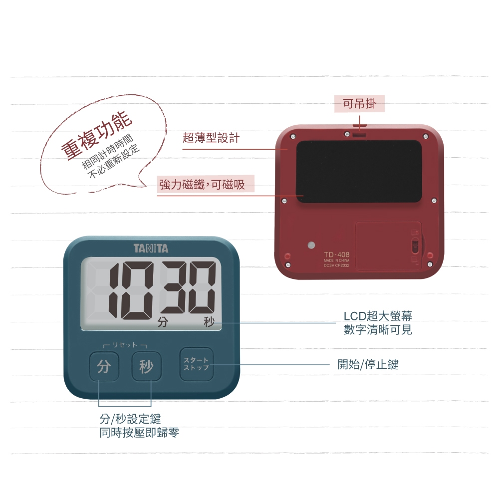 【滿千抽豪禮】日本TANITA 莫藍迪復古大分貝電子計時器TD408-台灣公司貨紅色|藍色Others日本TANITA 台灣旗艦館