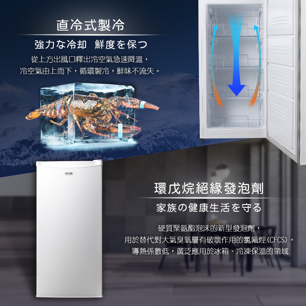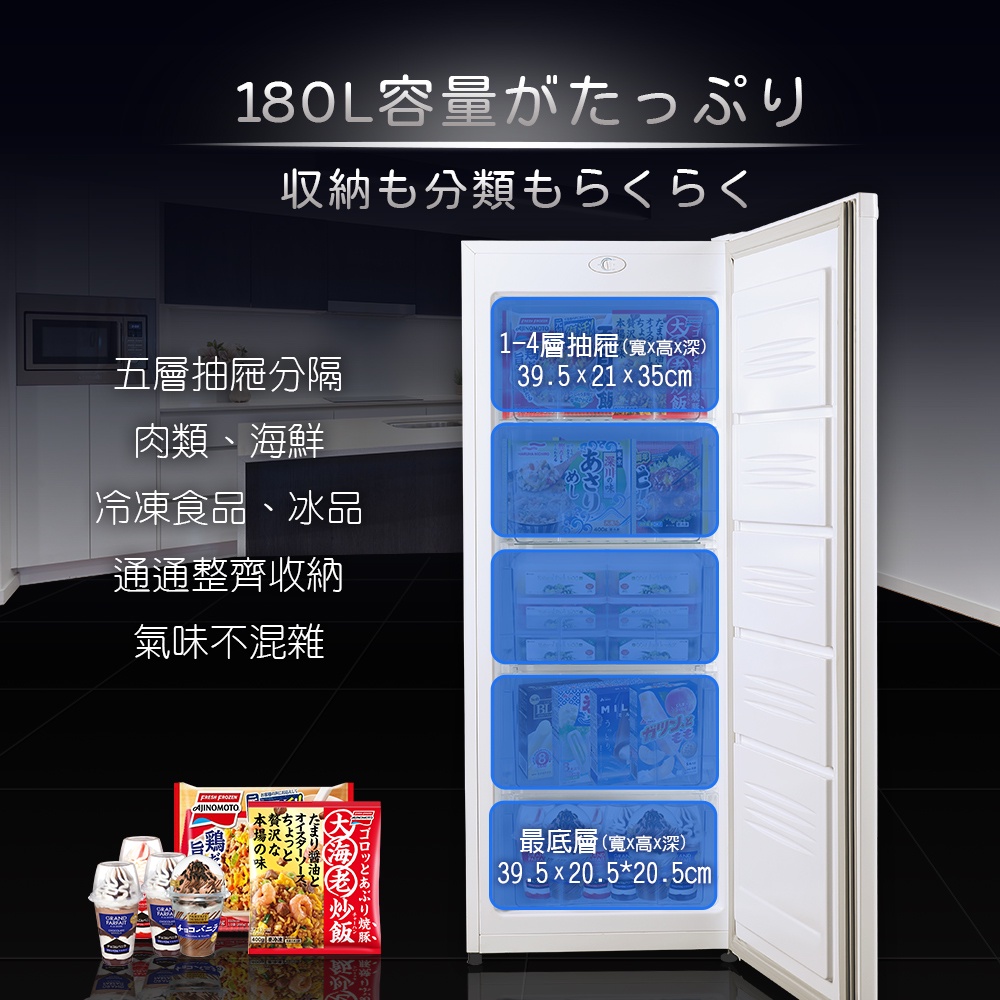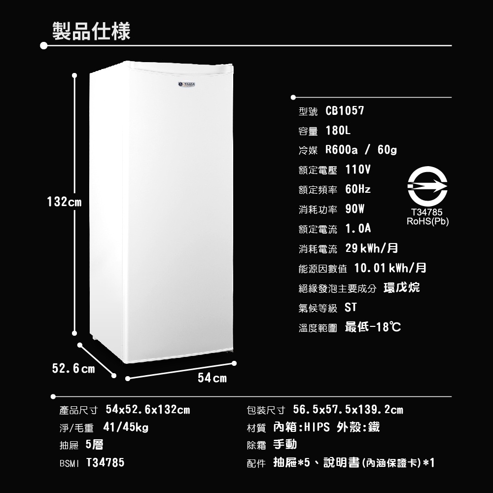 【TAIGA大河】超省電 180L直立式冷凍櫃 CB1057 通過BSMI商標局認證 字號T34785白|黑Freezers日本TAIGA 大河家電