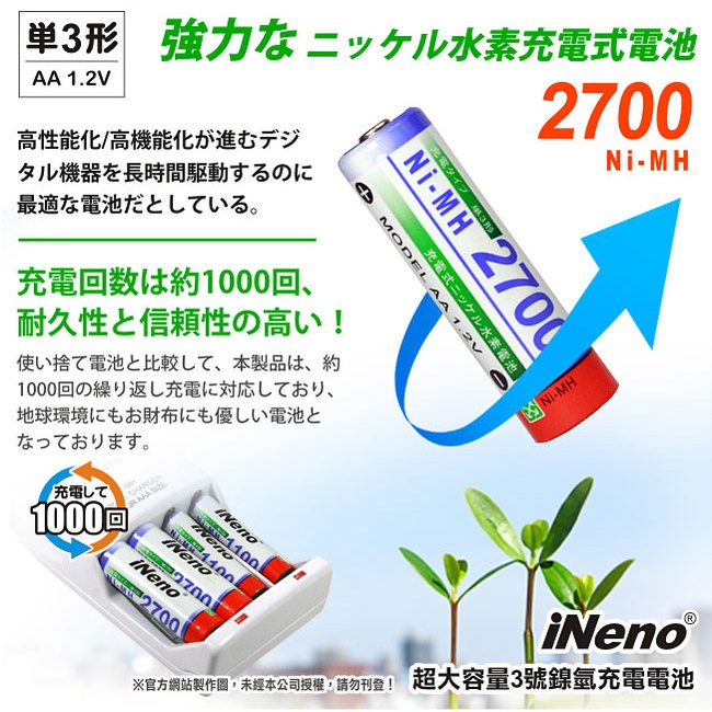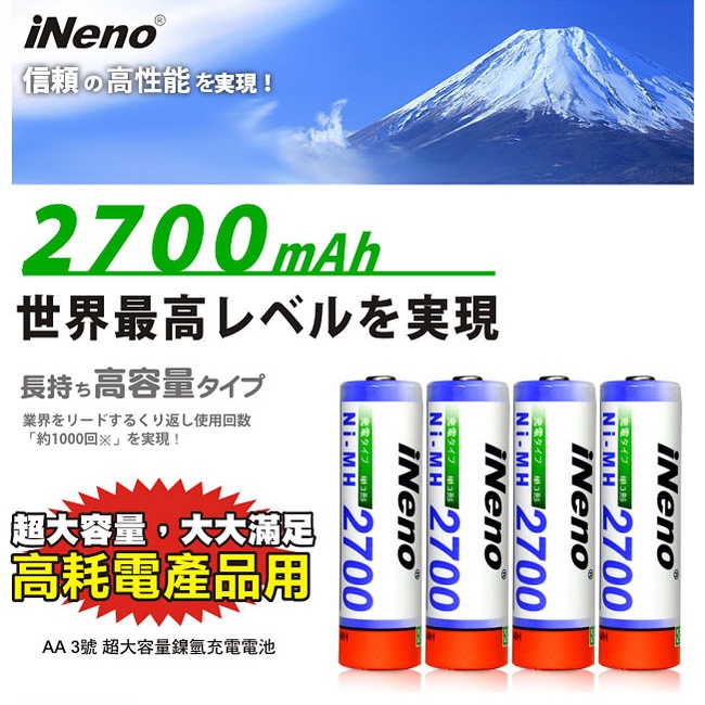 【iNeno】高容量3號鎳氫充電電池2700mAh(8入)【iNeno】高容量3號鎳氫充電電池2700mAh(8入)Batteries & Battery Grips日本KOTSURU-便利速達