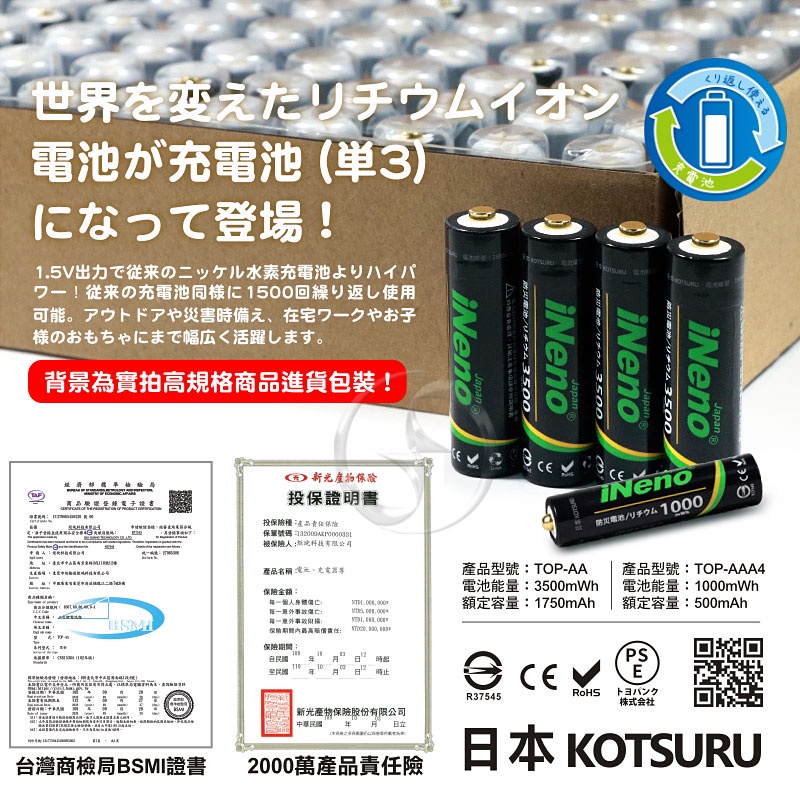 【iNeno】低自放3號/AA鎳氫充電電池2500mAh(8入)【iNeno】低自放3號/AA鎳氫充電電池2500mAh(8入)日本KOTSURU-便利速達
