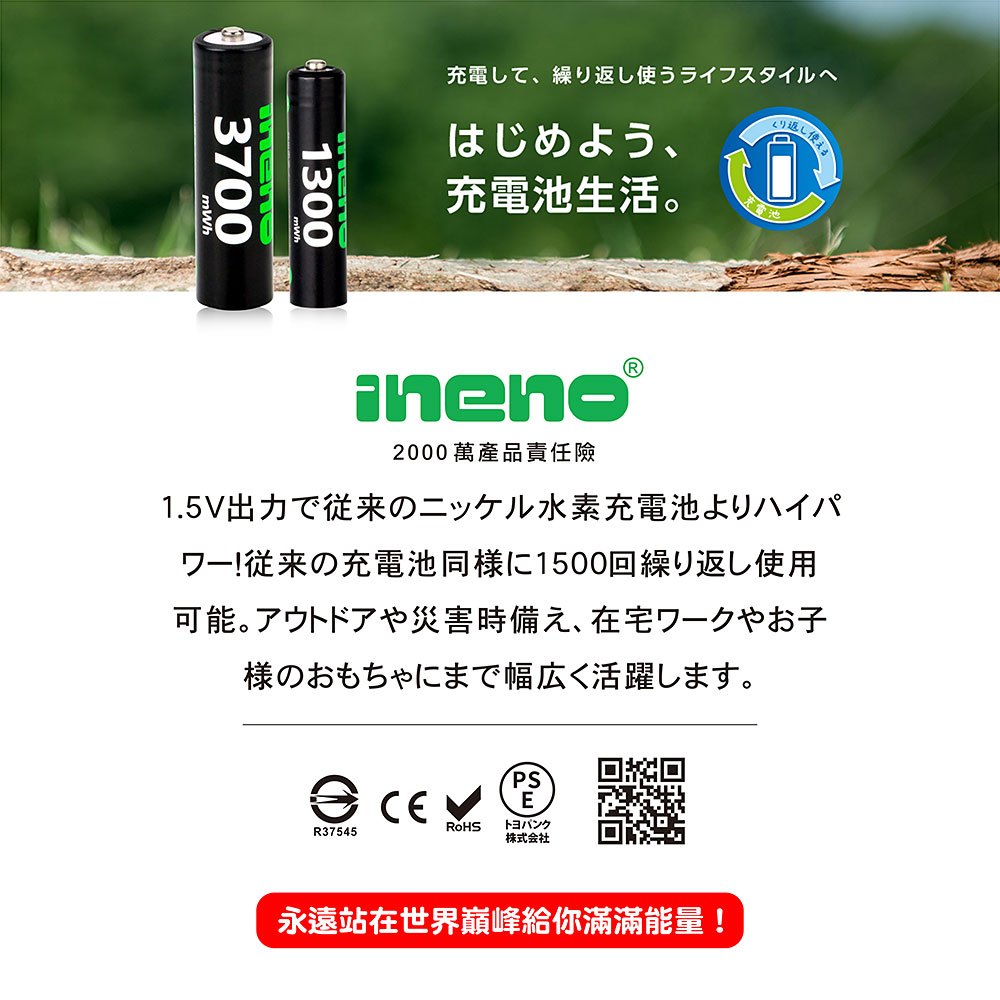 【ineno】1.5V鋰電池1300mWh 4號4入 搭配液晶顯示鋰電池充電器【ineno】1.5V鋰電池1300mWh 4號4入 搭配液晶顯示鋰電池充電器Batteries & Battery Grips日本KOTSURU-便利速達