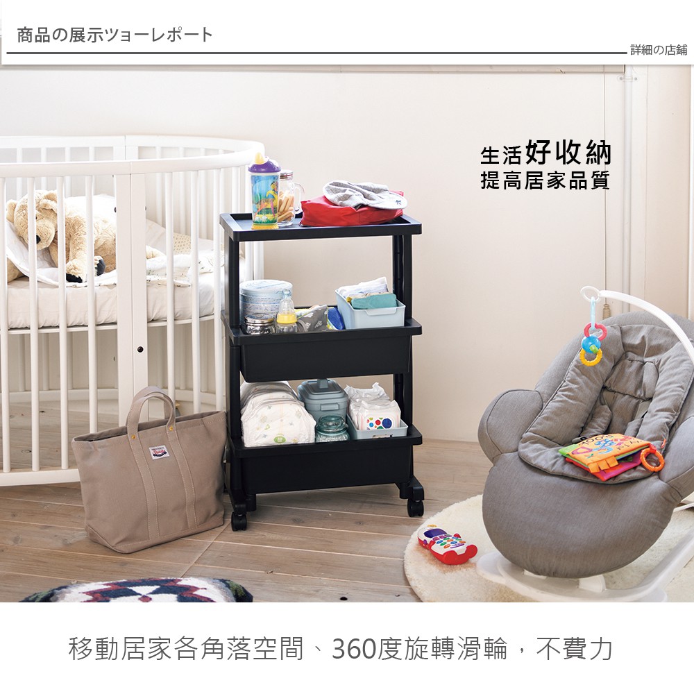 【日本JEJ】LISE TABLE WAGON組立式檯面置物3層推車/ 嬰兒床邊收納推車-DIY米白色|藍色|黑色Stroller Accessories日本JEJ收納 台灣旗艦店