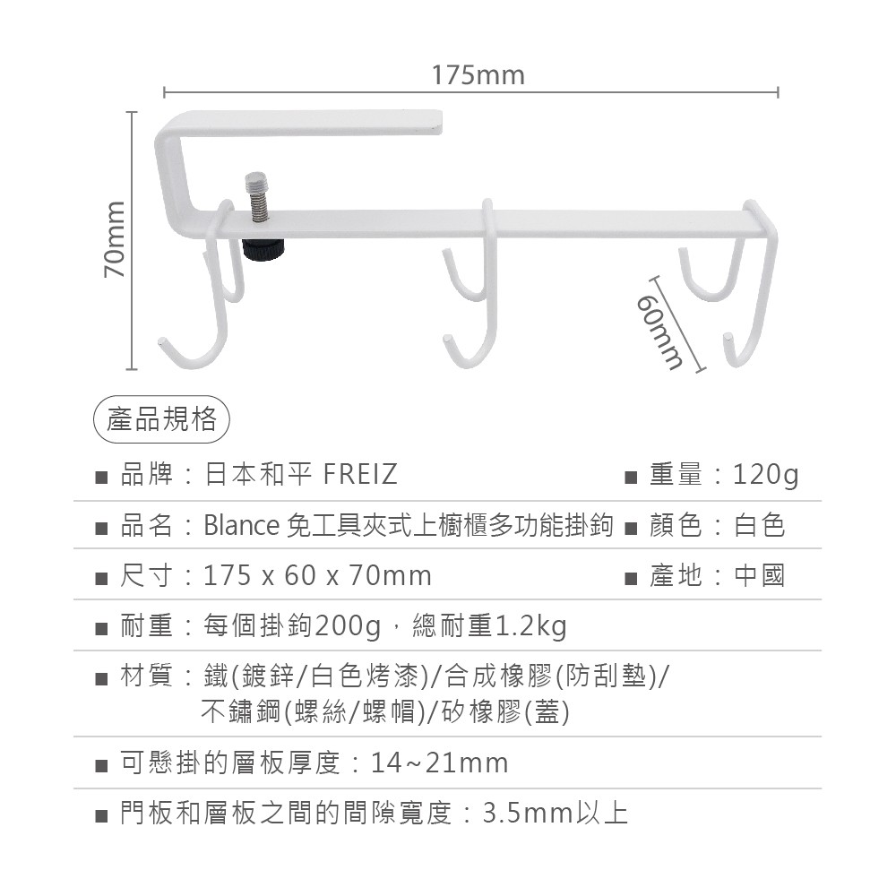 【日本和平】FREIZ Blance 免工具夾式上櫥櫃多功能掛鉤RG-0341/掛勾架 收納 掛鉤【日本和平】FREIZ Blance 免工具夾式上櫥櫃多功能掛鉤RG-0341/掛勾架 收納 掛鉤Hooks日本JEJ收納 台灣旗艦店