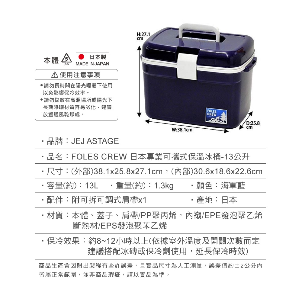 【日本 JEJ ASTAGE】可攜式保溫冰桶 FolesCrew系列(釣魚/露營/戶外休閒)13L|25L|35LCamping & Hiking日本JEJ收納 台灣旗艦店