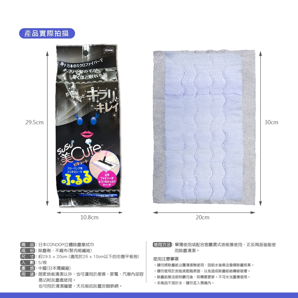 日本山崎 CONDOR 立體強力除塵乾拖巾(5枚入)日本山崎 CONDOR 立體強力除塵乾拖巾(5枚入)Dusters日本JEJ收納 台灣旗艦店