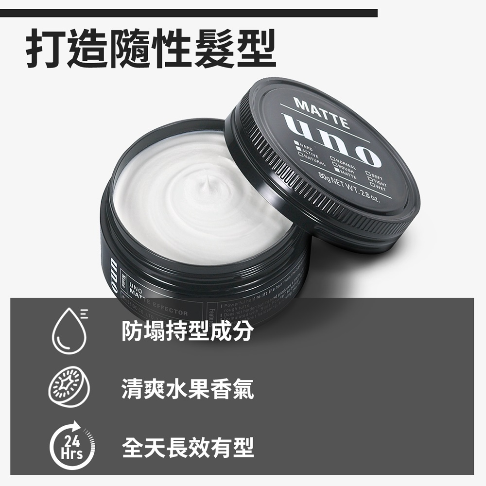 UNO 髮腊/髮凍 80g【日本FineToday旗艦店】洗練髮凍 x1入|隨意帥性 x1入|徹底堅持 x1入|絕對上進 x1入|歷久彌堅 x1入Hair Styling日本FineToday旗艦店 I 專科 I 思波綺I FINO I UNO