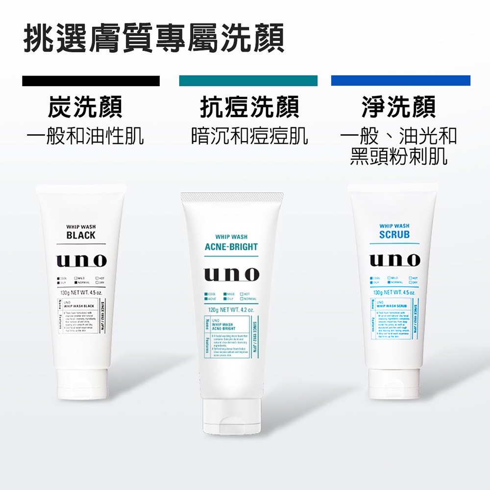 UNO 新炭洗顏/淨洗顏/潤洗顏/抗痘洗顏 130g (1入、3入) 【日本FineToday旗艦店】洗面乳 洗顏 潔顏新炭1入|新淨3入|新潤3入|新炭3入|新淨1入|新潤1入|抗痘1入|抗痘3入Skincare日本FineToday旗艦店 I 專科 I 思波綺I FINO I UNO