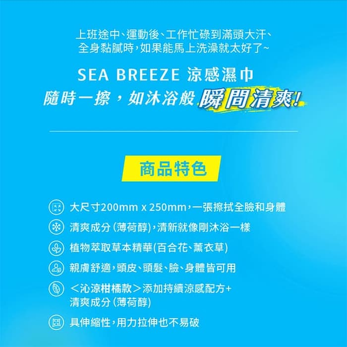 <會員獨享價>SEA BREEZE 涼感濕巾(臉&身體兩用)-清新皂香 253g【日本FineToday旗艦店】<會員獨享價>SEA BREEZE 涼感濕巾(臉&身體兩用)-清新皂香 253g【日本FineToday旗艦店】Wipes日本FineToday旗艦店 I 專科 I 思波綺I FINO I UNO