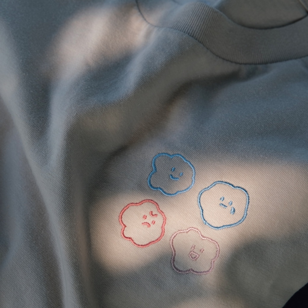 【方坊】喜怒哀樂 刺繡 衣服 T-shirt 深藍色 奶茶色 台灣製