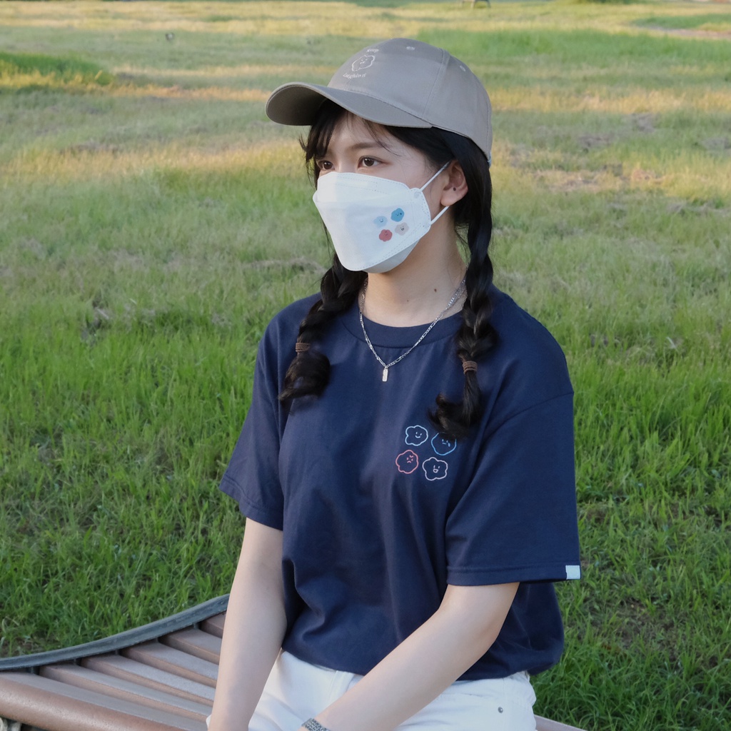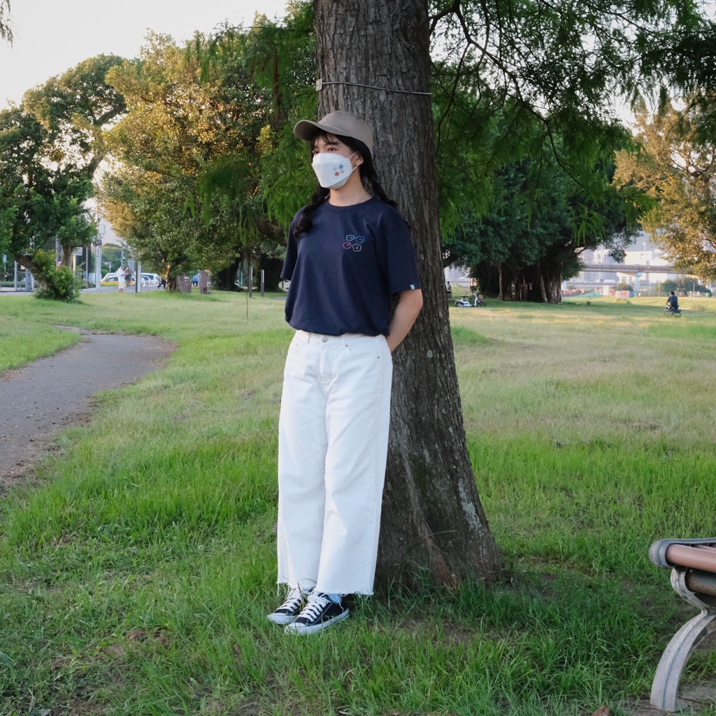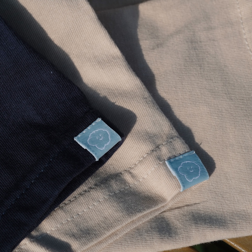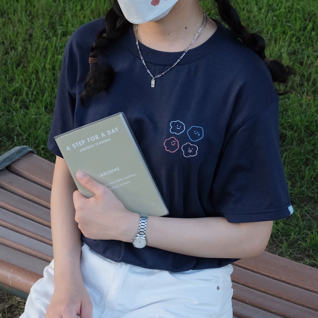 • 【方坊】喜怒哀樂 刺繡 衣服 T-shirt 深藍色 奶茶色 台灣製