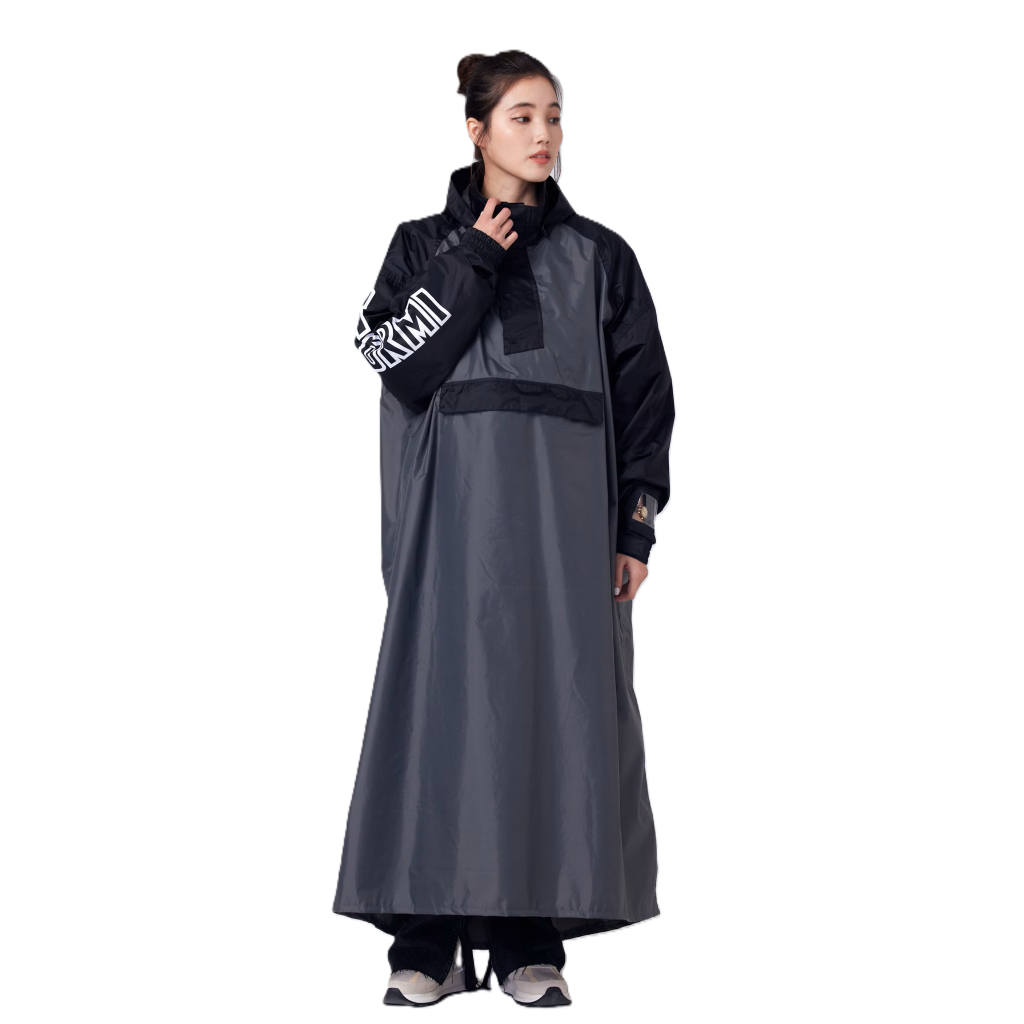 SNOWSTORMI 雨衣 GL-S 一件式側開機能雨衣 鈦灰深黑 加大領口 背包空間 V型反光條 連身式 雨衣