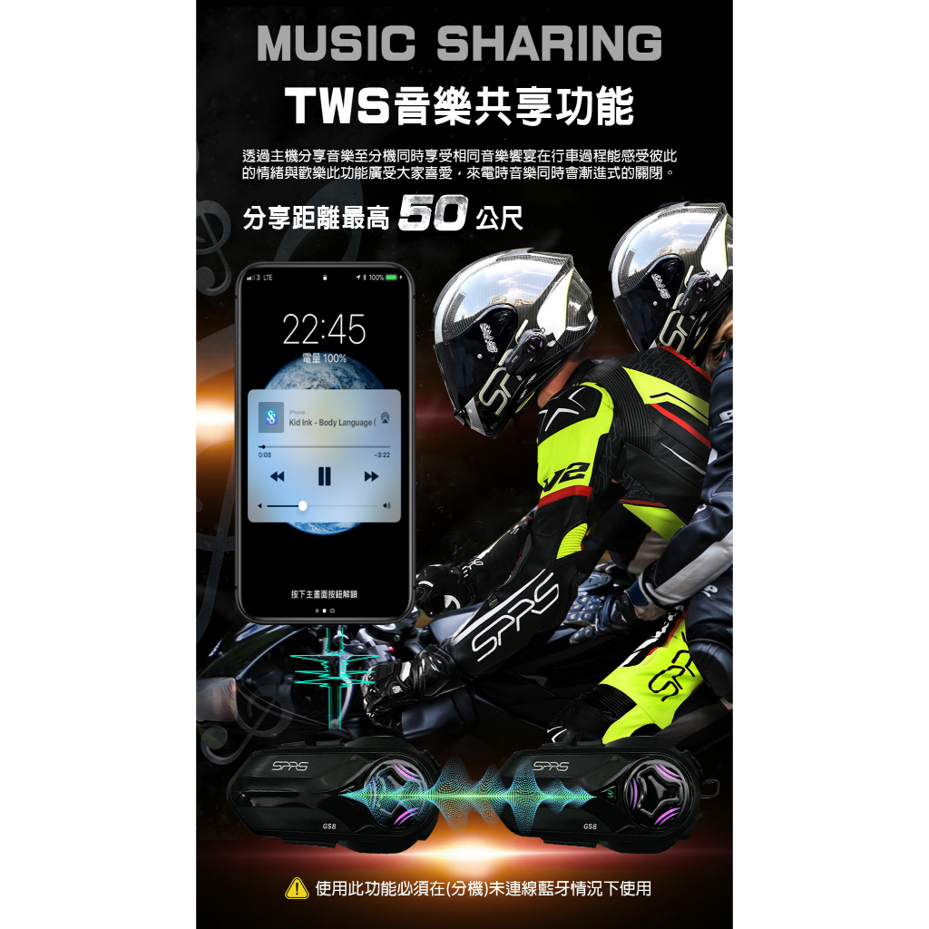 SPRS 藍芽耳機 GS8 雙藍芽晶片 安全帽騎型耳機 騎士 藍牙 耳機SPRS GS8 藍芽耳機比帽王 騎士用品專賣店