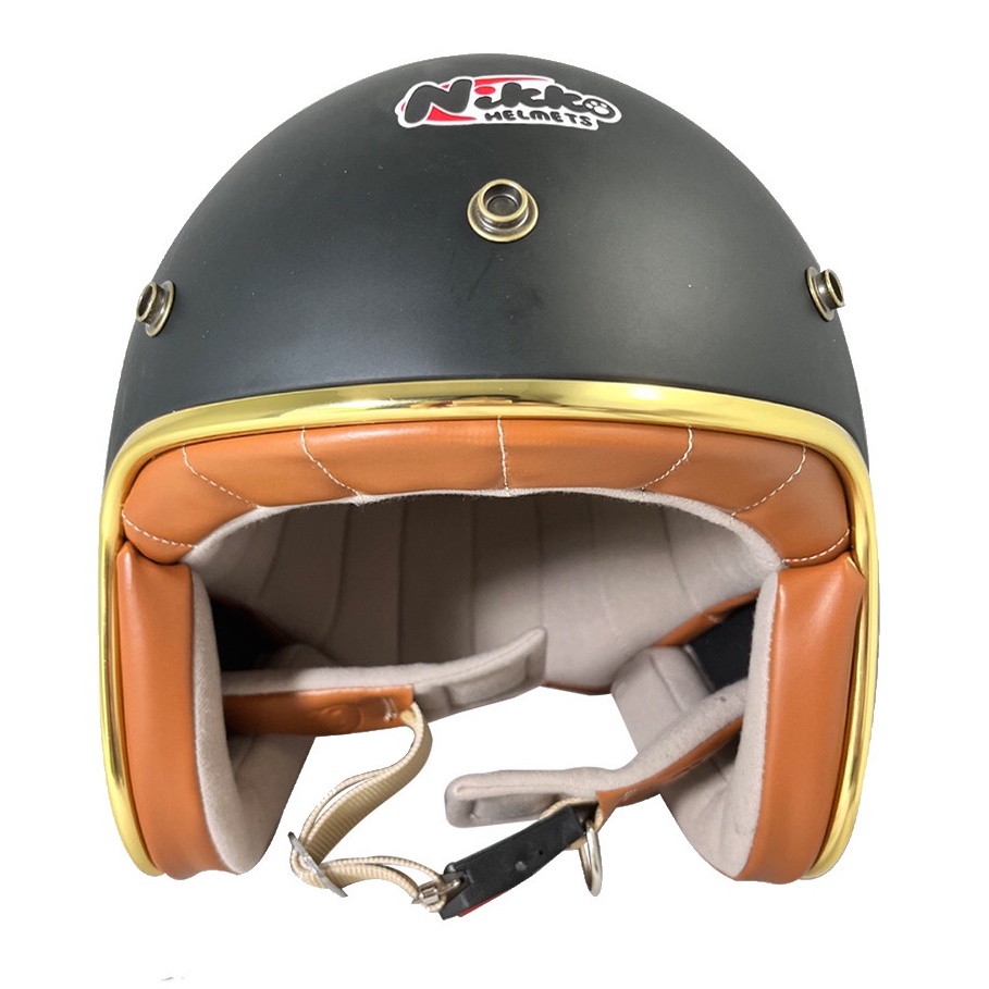 NIKKO N-401 美式復古 安全帽 咖波 金色邊條 皮革內裡 全拆洗 復古帽《比帽王》咖波 消光黑,M:55~56cm(贈三扣泡泡鏡)|咖波 消光黑,L:57~58cm(贈三扣泡泡鏡)|咖波 消光黑,XL:59~60cm(贈三扣泡泡鏡)|咖波 白,S:53~54cm(贈三扣泡泡鏡)|咖波 白,M:55~56cm(贈三扣泡泡鏡)|咖波 白,L:57~58cm(贈三扣泡泡鏡)|咖波 白,XL:59~60cm(贈三扣泡泡鏡)|咖波 消光黑,S:53~54cm(贈三扣泡泡鏡)|咖波 亮黑,M:55~56cm(贈三扣泡泡鏡)|咖波 亮黑,XL:59~60cm(贈三扣泡泡鏡)|咖波 亮黑,S:53~54cm(贈三扣泡泡鏡)|咖波 亮黑,L:57~58cm(贈三扣泡泡鏡)比帽王 騎士用品專賣店