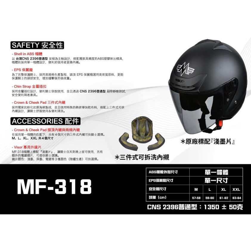 MING FENG 安全帽 MF-318 素色 消光黑 全拆洗 透氣 半罩《比帽王》M : 53-54cm|L : 55-56cm|XL : 57-58cm|2XL : 59-60cm比帽王 騎士用品專賣店