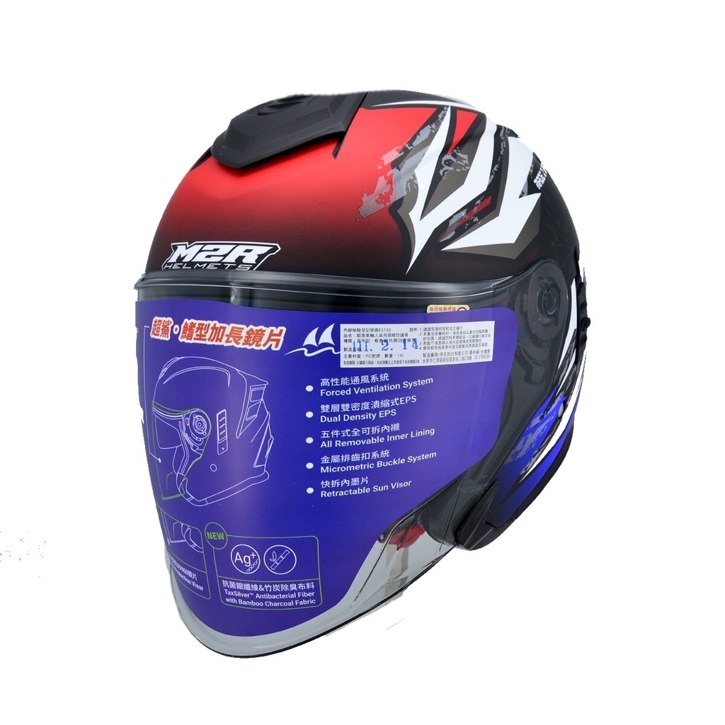 M2R FR-2 安全帽 FR2 紀念版 彩繪 18 亮面黑紅 加長鏡片 內襯可拆 內藏墨鏡 半罩《比帽王》XS:53-54cm|S:55-56cm|M:57-58cm|L:59-60cm|XL:61-62cm|2XL:63-64cm比帽王 騎士用品專賣店
